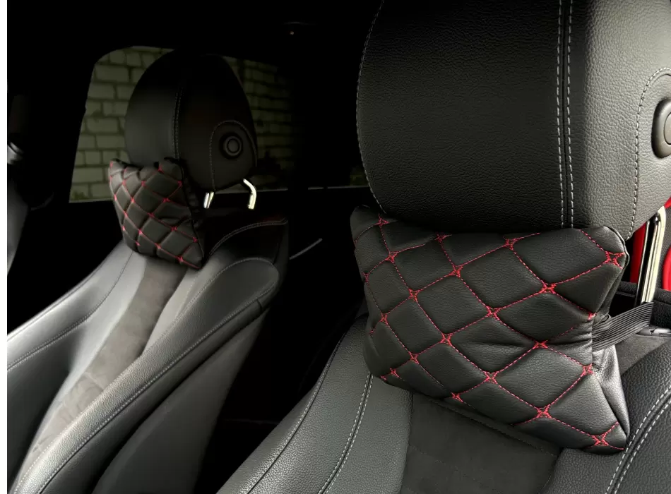 Подушки автомобильные из эко-кожи (комплект 2 шт) красный ромб