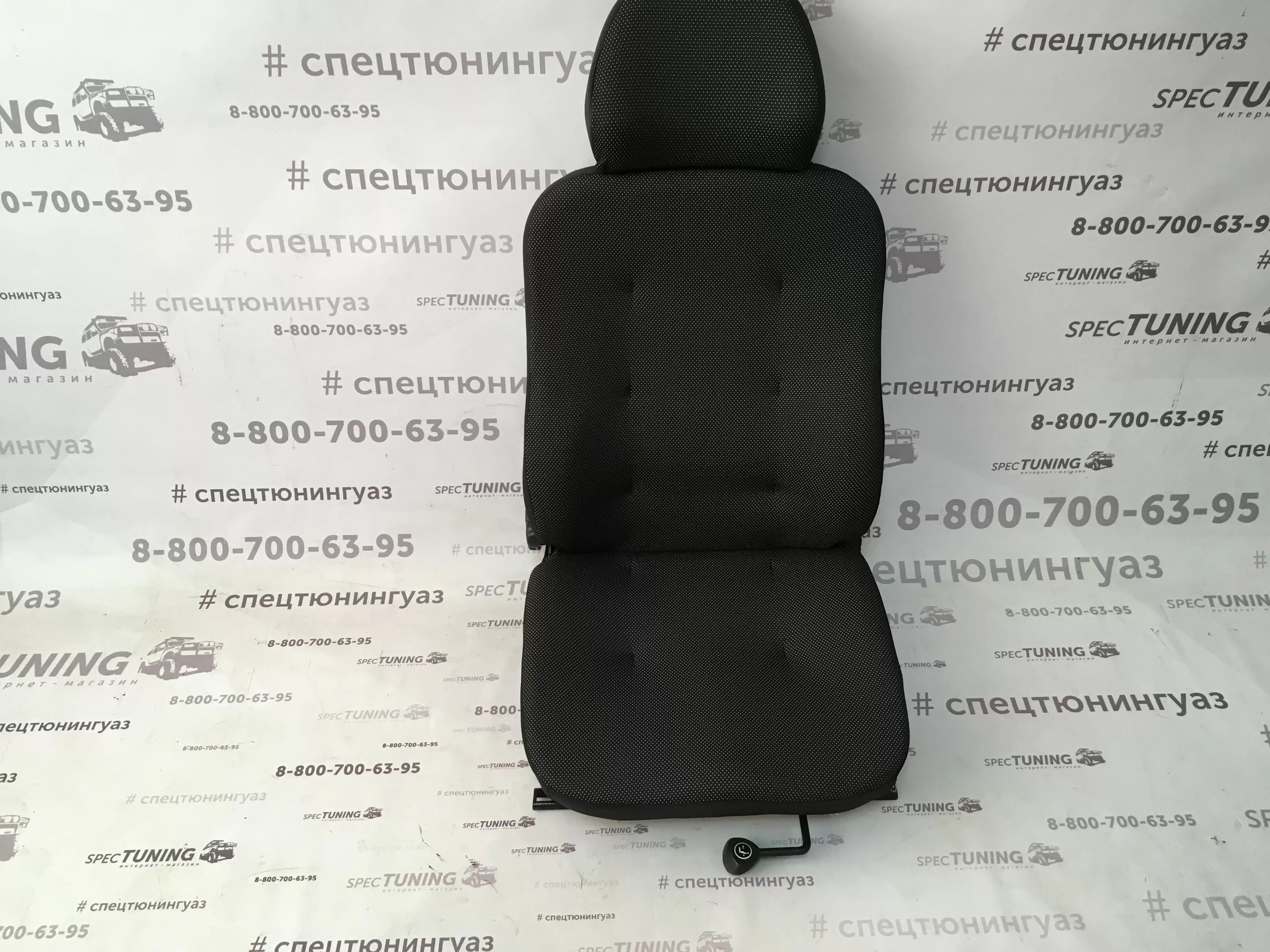 Переднее пассажирское сиденье УАЗ-452 «ЛЮКС» старого образца, оснащённое салазкой для удобного перемещения вперёд и назад. Производство ульяновской компании СимТехТ, официально специализирующейся на изготовлении сидений и комплектующих для автомобилей семейства УАЗ.