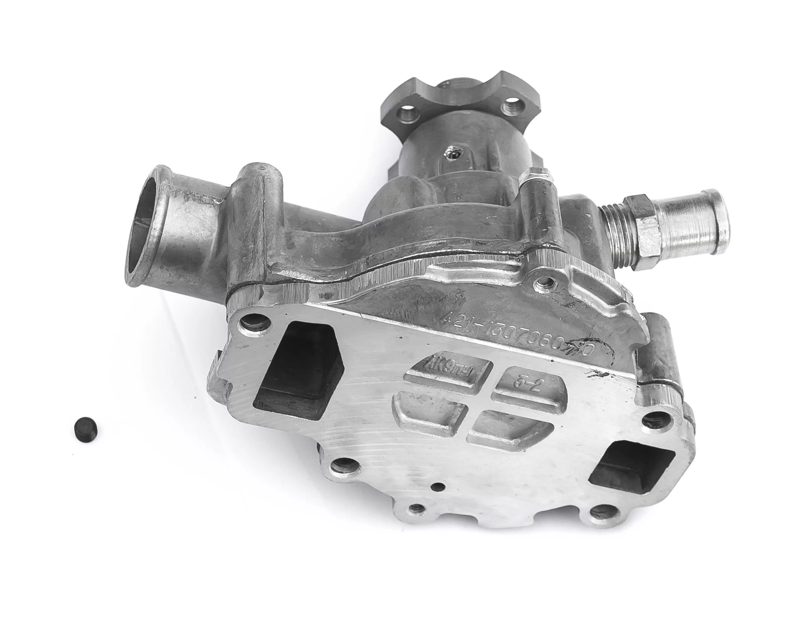 - Корпус термостата двигателя снимается с двигателя для обеспечения доступа к крепежу помпы. Произвести зачистку его посадочного места мелкозернистой наждачкой, предварительно аккуратно удалив отвёрткой либо ножом остатки прокладки (при обратной сборке прокладку обязательно нужно заменить на новую).