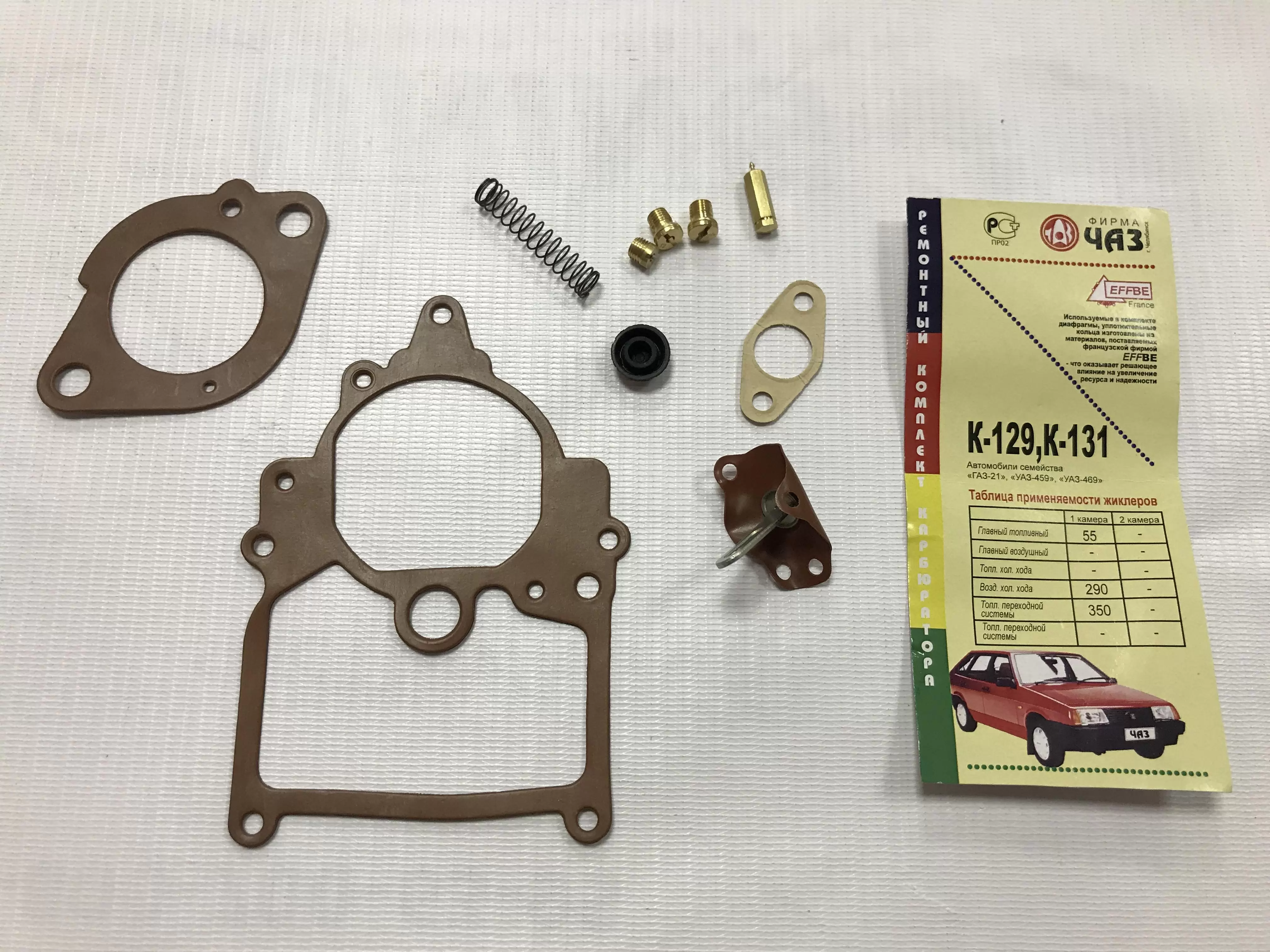Ремкомплект карбюраторов К129, К131 для двигателей автомобилей М-21 "Волга", УАЗ-469, УАЗ-452, РАФ-977 и их модификаций.