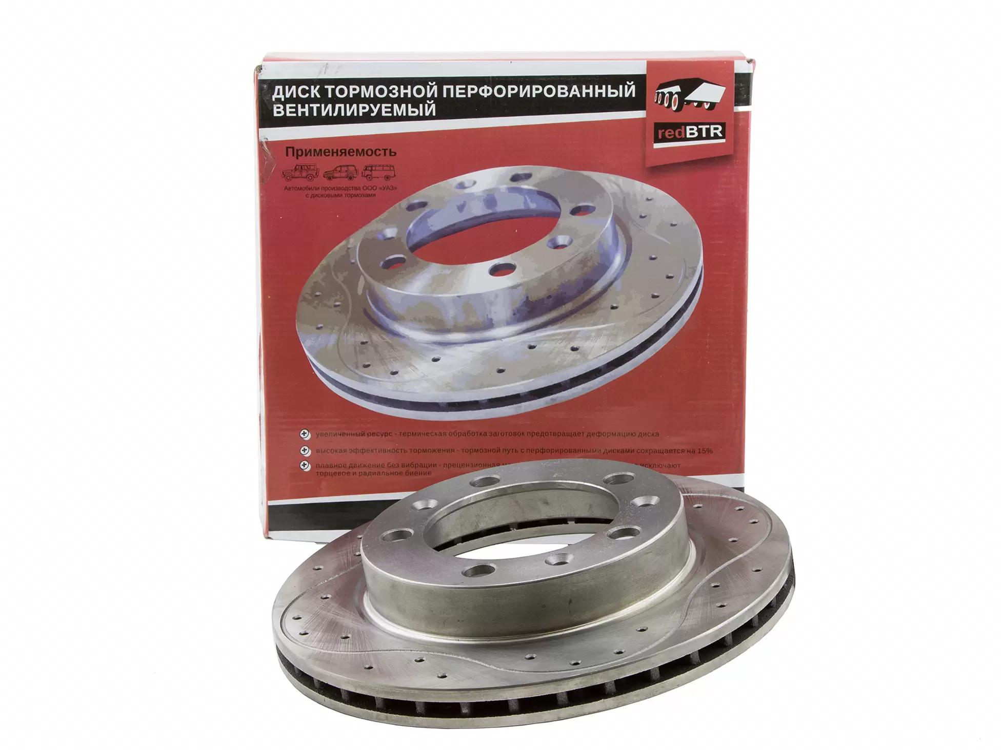Диск тормозной УАЗ 452, Хантер, Патриот, Симбир (перфорированный вентилируемый) redBTR