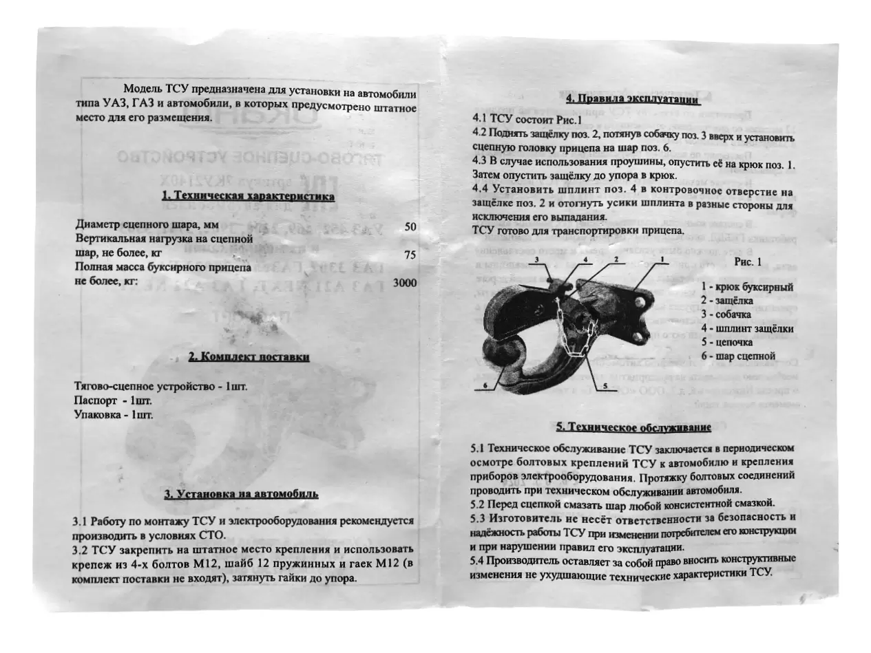 - Тягово-сцепное устройство – 1 шт.