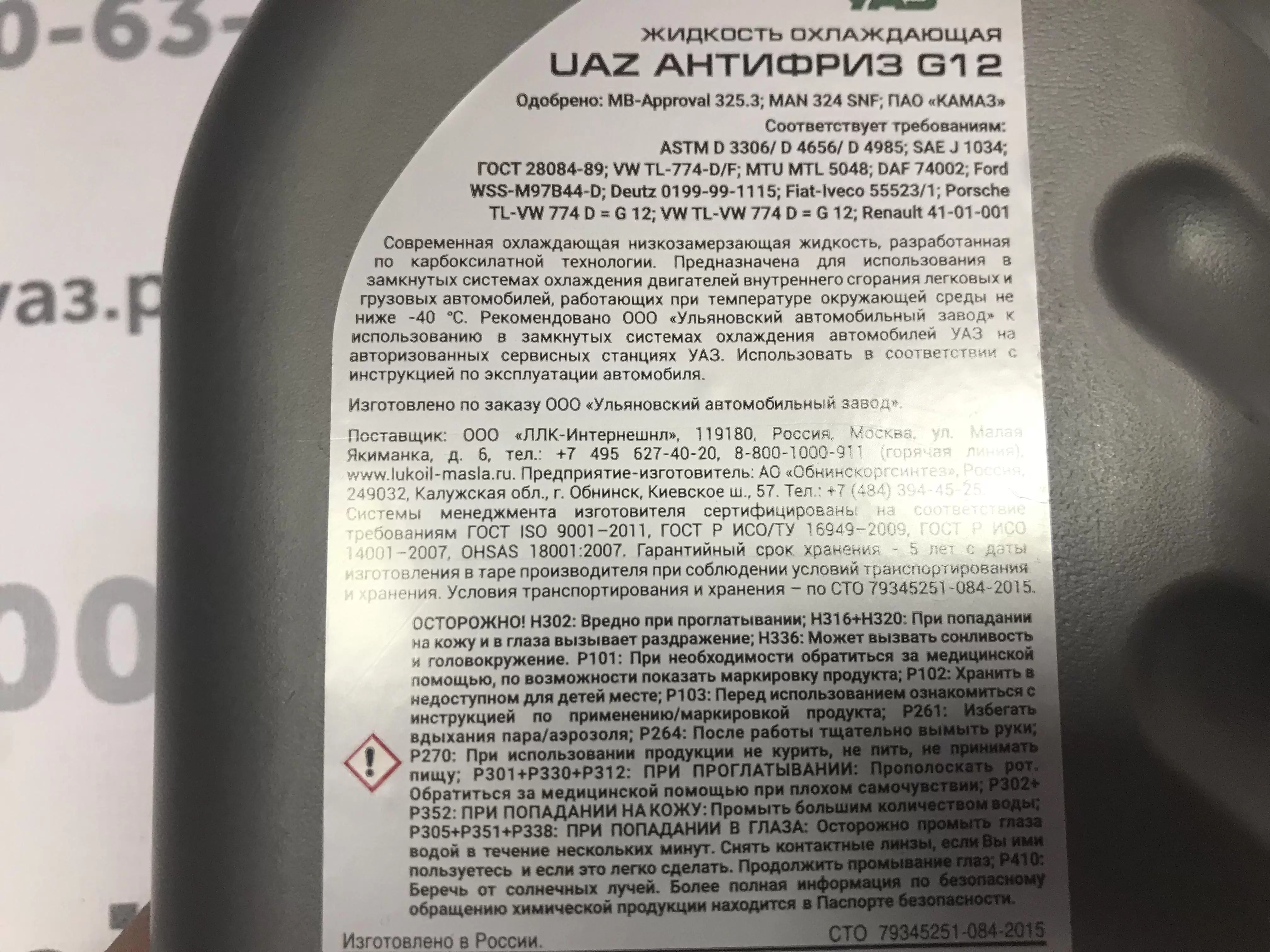 Современная охлаждающая низкозамерзающая жидкость, разработанная по карбоксилатной технологии. Предназначена для использования в замкнутых системах охлаждения двигателей внутреннего сгорания легковых и грузовых автомобилей, работающих при температуре окружающей среды не ниже -40 С. Рекомендовано к использованию в замкнутых системах охлаждения автомобилей УАЗ на авторизованных станциях УАЗ.