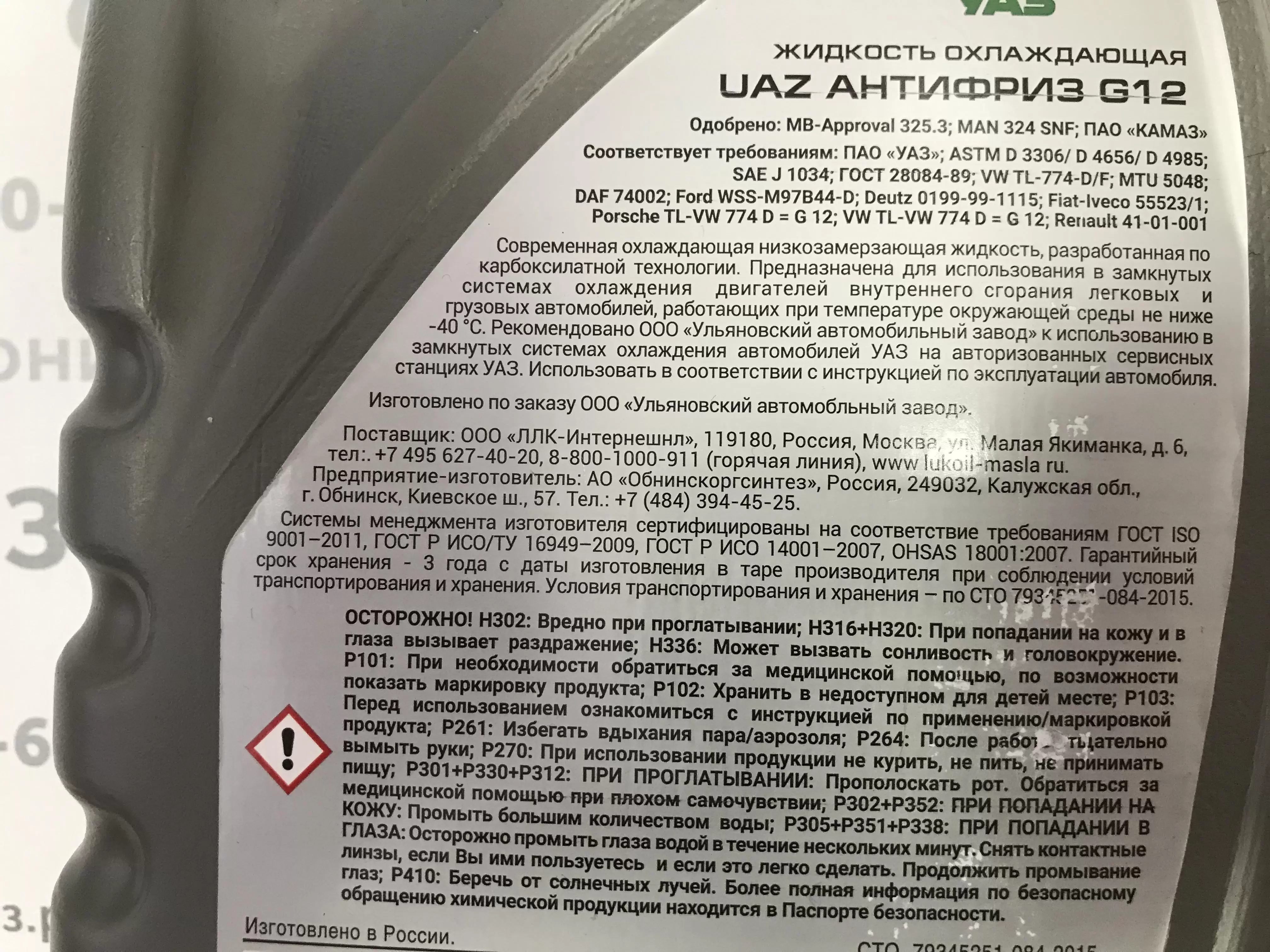 Современная охлаждающая низкозамерзающая жидкость, разработанная по карбоксилатной технологии. Предназначена для использования в замкнутых системах охлаждения двигателей внутреннего сгорания легковых и грузовых автомобилей, работающих при температуре окружающей среды не ниже -40 С. Рекомендовано к использованию в замкнутых системах охлаждения автомобилей УАЗ на авторизованных станциях УАЗ.